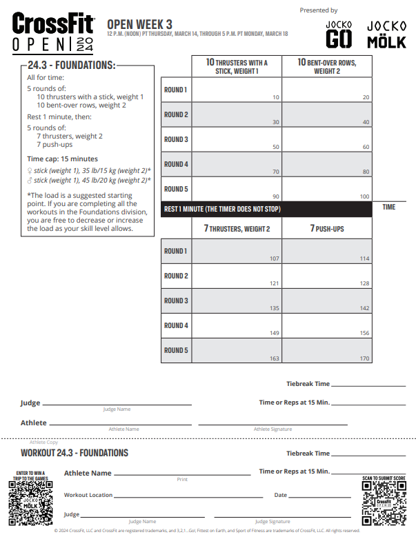 | Open Workout 24.3 - 2024년 크로스핏 Open 세 번째 와드(Rx'd & Scaled) (0) | 2024.03.16 |