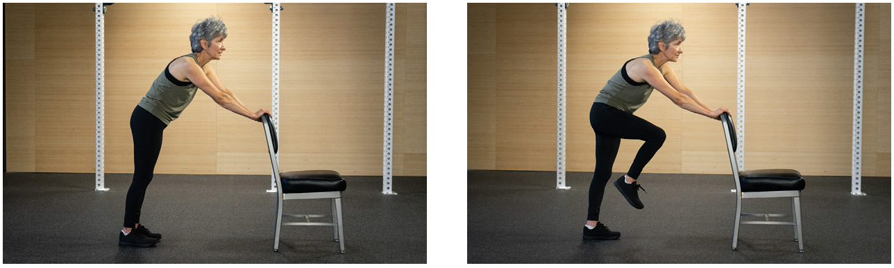 2. 무릎을 번갈아 가며 가슴 쪽으로 가져옵니다.