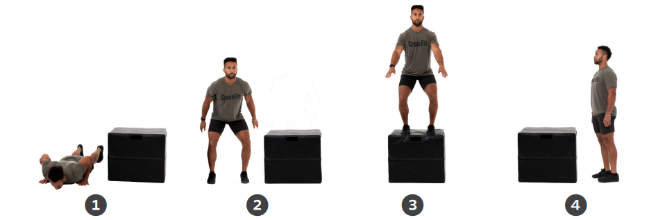 - 마지막 버피 박스 점프 오버를 완료한 후 박스의 반대편 바닥에 양 발이 닿으면 시간이 멈춥니다.