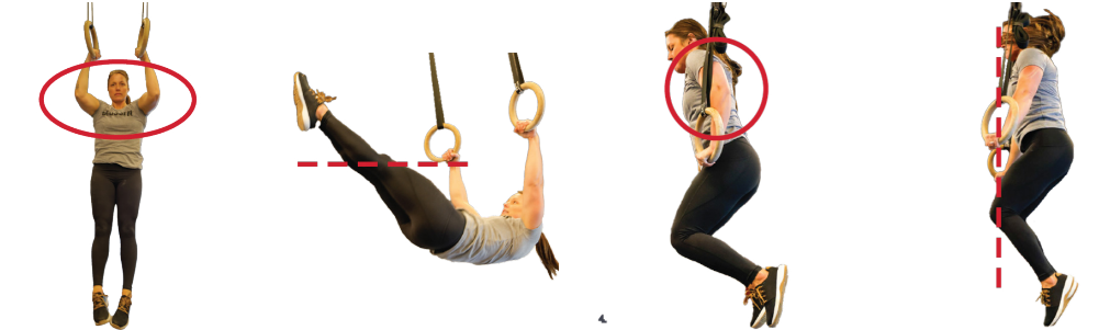 1. 각 rep은 팔은 완전히 펴고 발을 바닥에서 떼고 매달리면서 시작합니다.