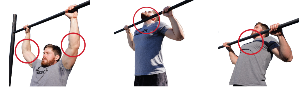 - 키핑(kipping)은 허용되지만, uprises, 지지용 swings/rolls, 기타 체조 동작은 허용되지 않습니다.