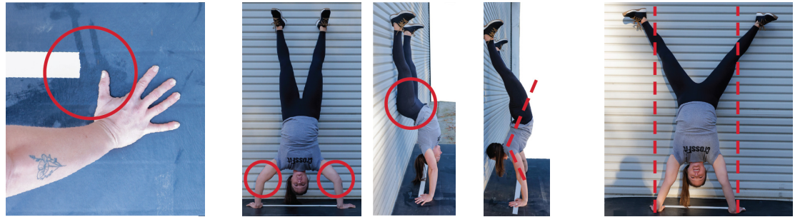 - Handstand push-up 벽에 등을 대고 똑바로 서서 시작합니다.