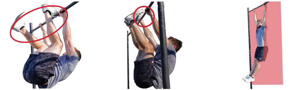 1. 한 발만 풀업 바에 닿거나, 양발이 동시에 닿지 않는 경우