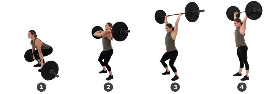 - 행 클린(Hang Clean)을 제외한 모든 스타일의 클린이 허용됩니다.